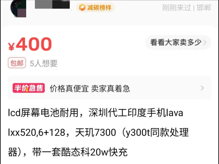 不过,当时还不知道手机的具体型号,故称其为lava lxx520,成交价通常在350元左右。